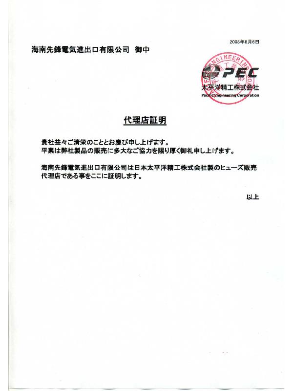 海南先鋒電氣進(jìn)出口有限公司成立于1999年,是經(jīng)海南省外經(jīng)貿(mào)廳批準(zhǔn),省工商局注冊(cè)的一家經(jīng)營(yíng)電氣零部件進(jìn)出口貿(mào)易的專業(yè)公司,總部位于我國(guó)南端充滿熱帶風(fēng)情的旅游城市—海南省海口市,公司經(jīng)營(yíng)理念是:誠(chéng)信為本,服務(wù)至上。主營(yíng)業(yè)務(wù)是為國(guó)內(nèi)各類線束工廠和汽車廠商引進(jìn)國(guó)外優(yōu)質(zhì)的電氣配件,公司經(jīng)過(guò)多年與用戶的精誠(chéng)合作,在國(guó)內(nèi)汽車行業(yè)和電子行業(yè)擁有良好的商業(yè)信譽(yù)。